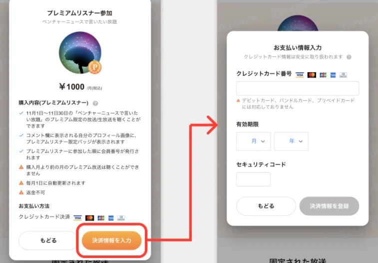 ※コインというVoicyアプリ内課金のシステムを通して支払いを行います。