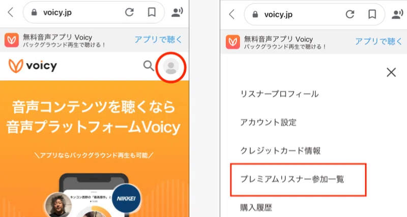 Voicyのプレミアムリスナーに申し込む方法は、「Webから登録」と「アプリから登録」の2種類あります。