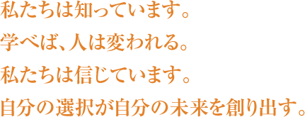 ここで学んだことを、世のため人のために活かします