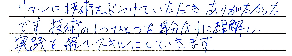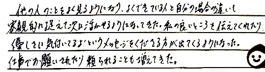動画受講でどこまで変われるか不安もありました。日々の実践と宿題をすることで、着実に変われました!