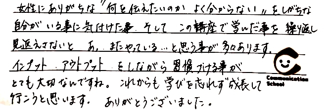 コミュニケーションのうまく行ってないポイントを自分ごととして気づかせてもらえる、なかなか無い学校でした!!!