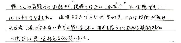 でも、相手が自分の方を振り向き、相手の意思でこちらの提案や要求を選択してくださるように持っていく技術と知り、私自信の説得の概念が変わりました。